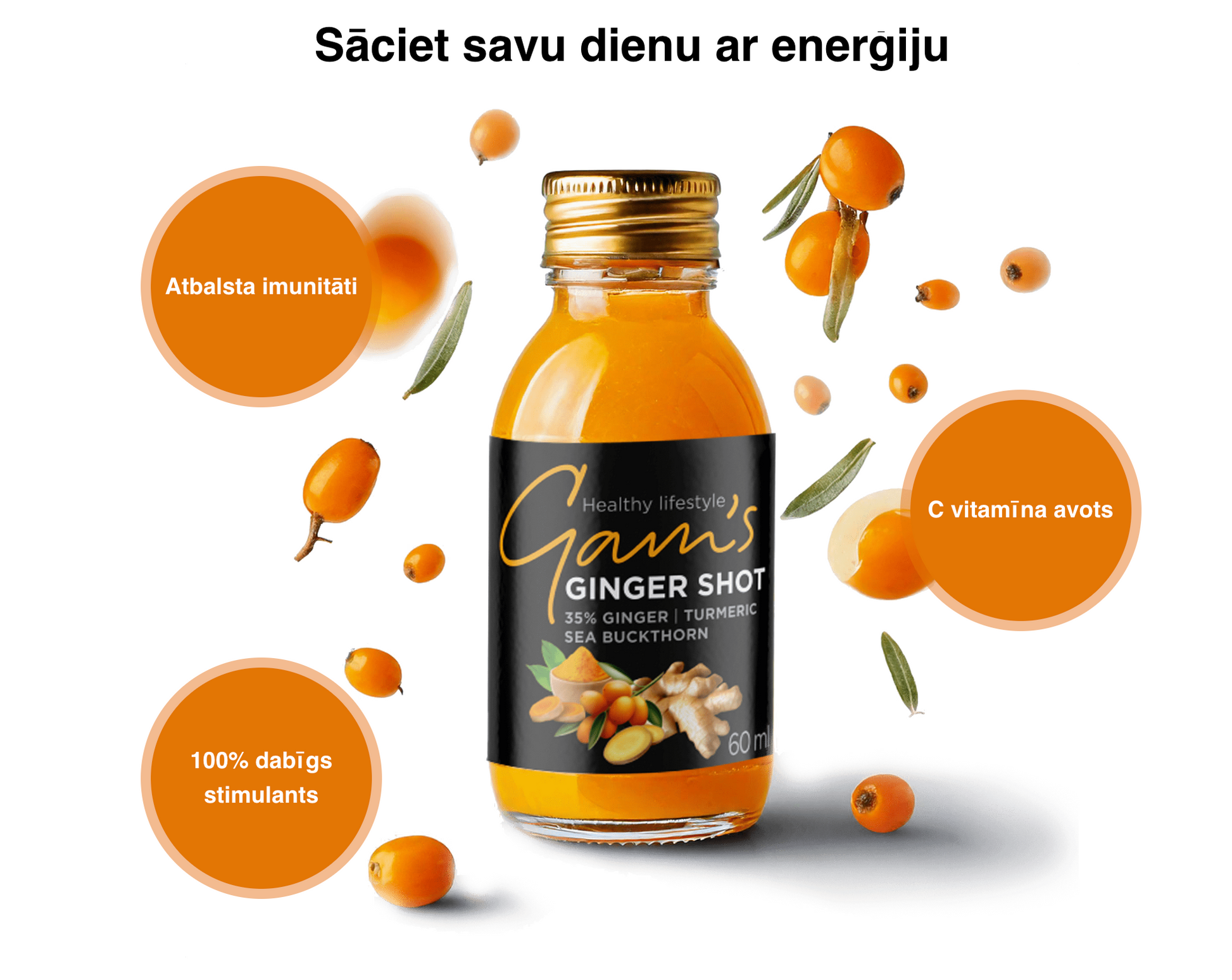 Kāpēc izvēlēties Gam's GINGER SHOT ar kurkumu un smiltsērkšķi?